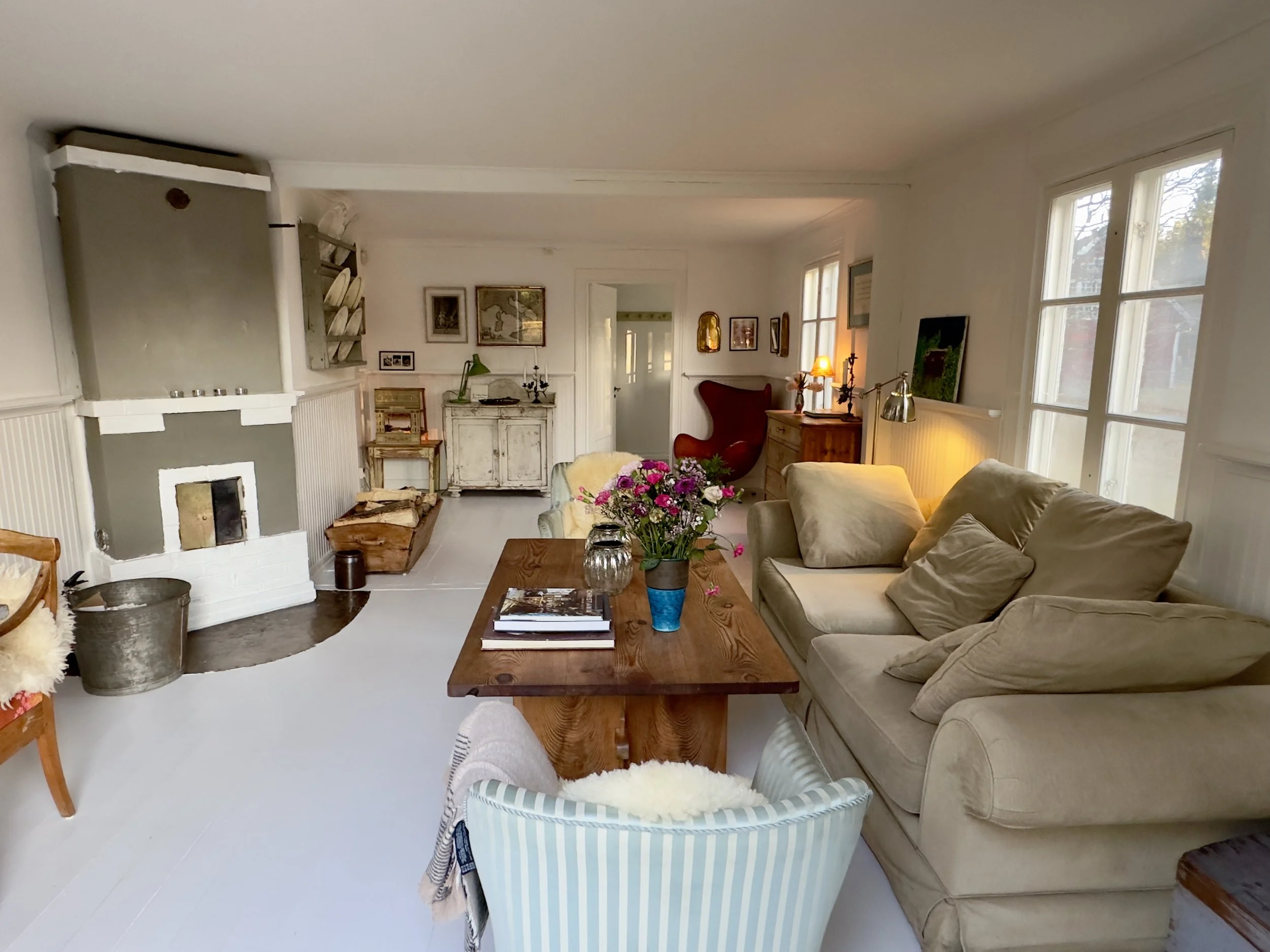A charming Swedish farmhouse nestled on large forested grounds for ultimate privacy and relaxation.